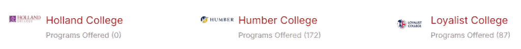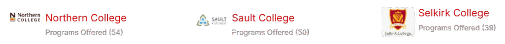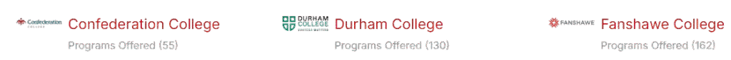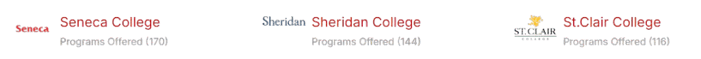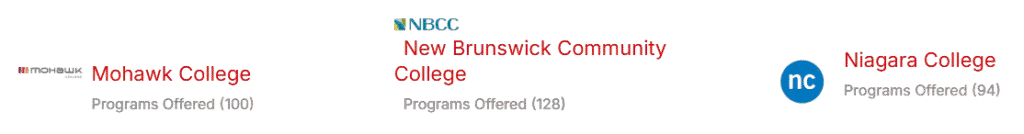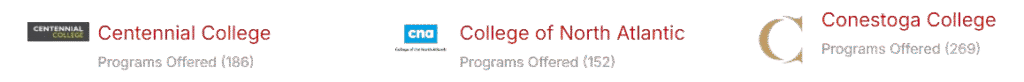 Identify the appropriate Colleges & Universities in adequate locations in Canada